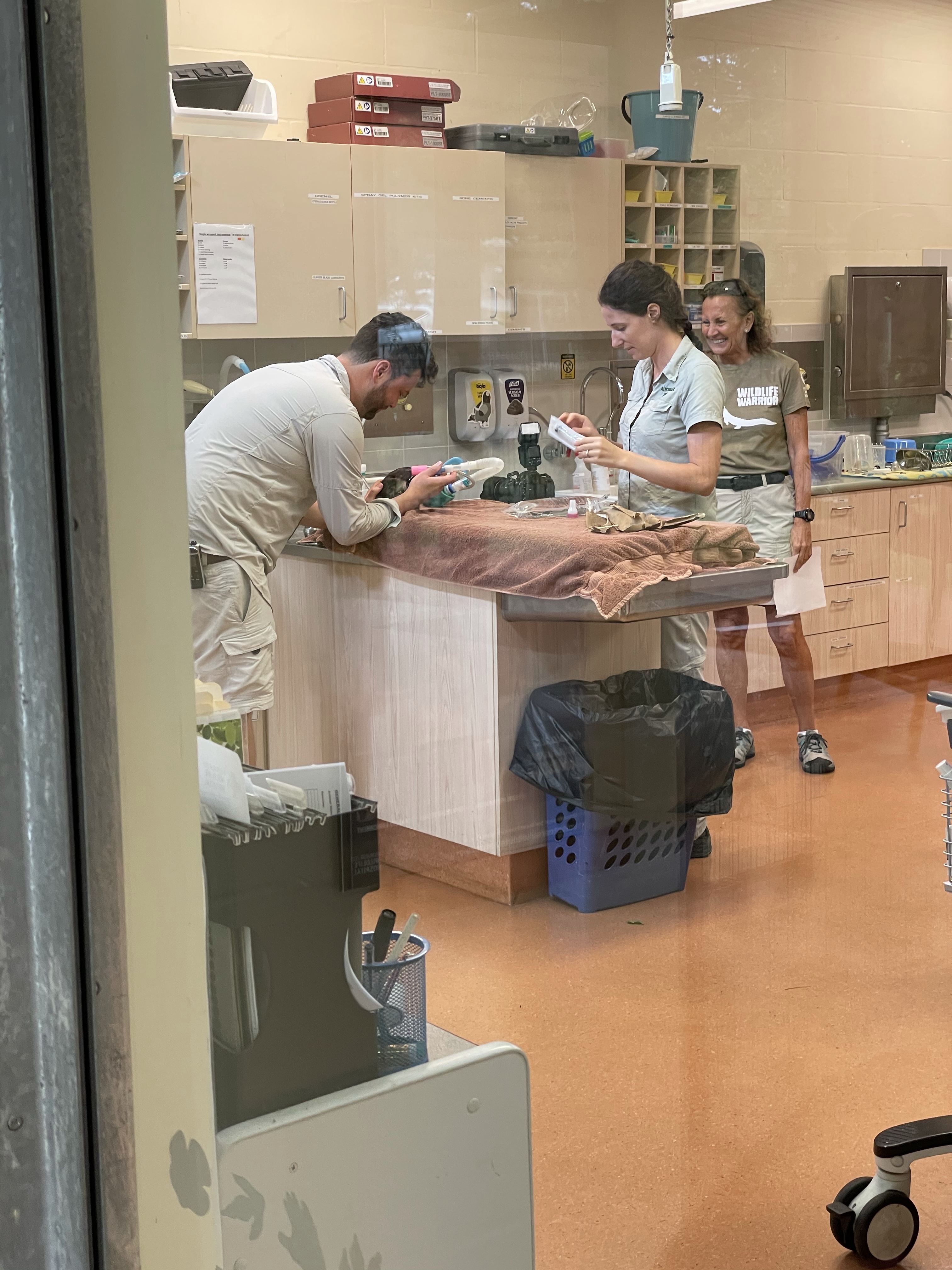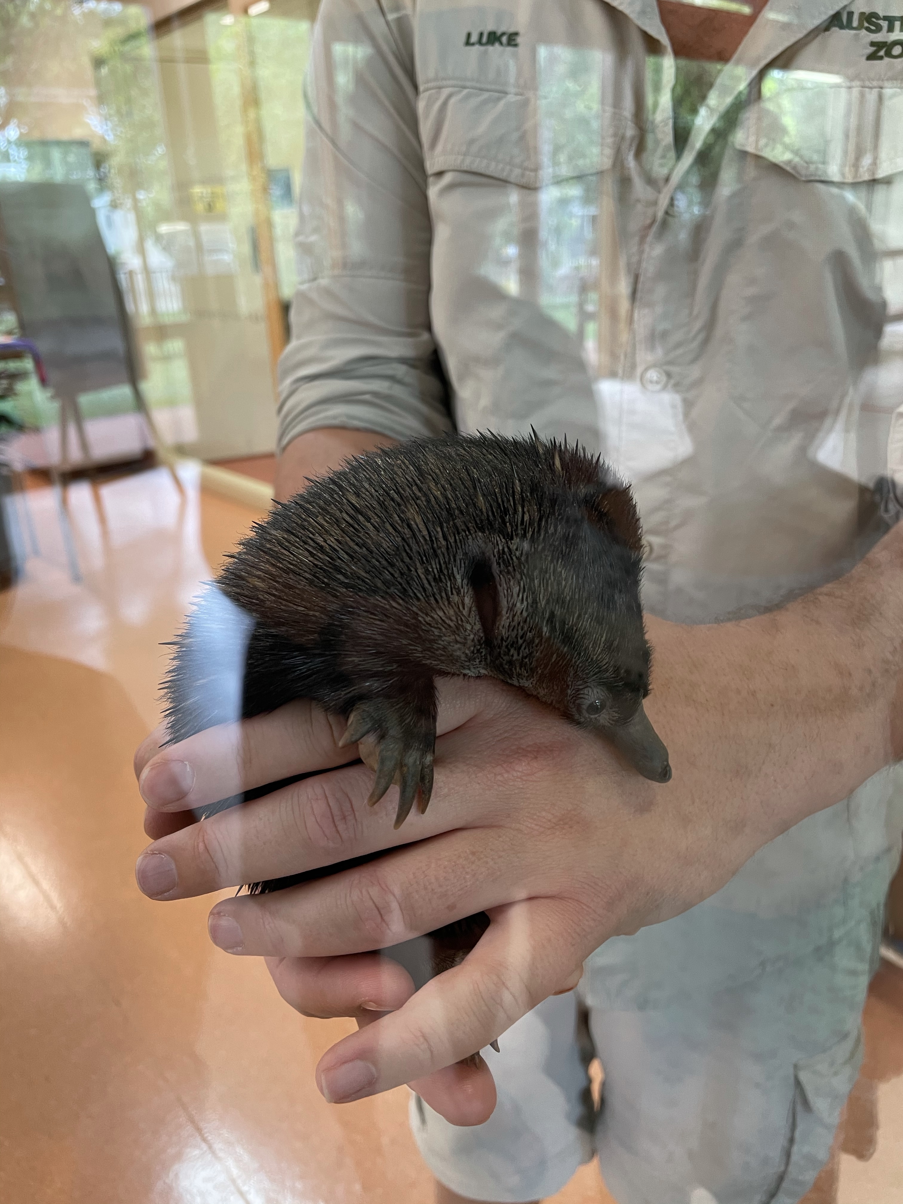 The Australia Zoo widlife hospital operates 24hrs a day and looks after hundreds of injured animals. Situated on the Zoo grounds you can take a sneak peek into the Hospital and see what’s being treated. Today we got to see an infant Echidna and Possum being treated. Also an Orphaned Koala. The baby room had many birds being hand fed and looked after by the amazing staff.