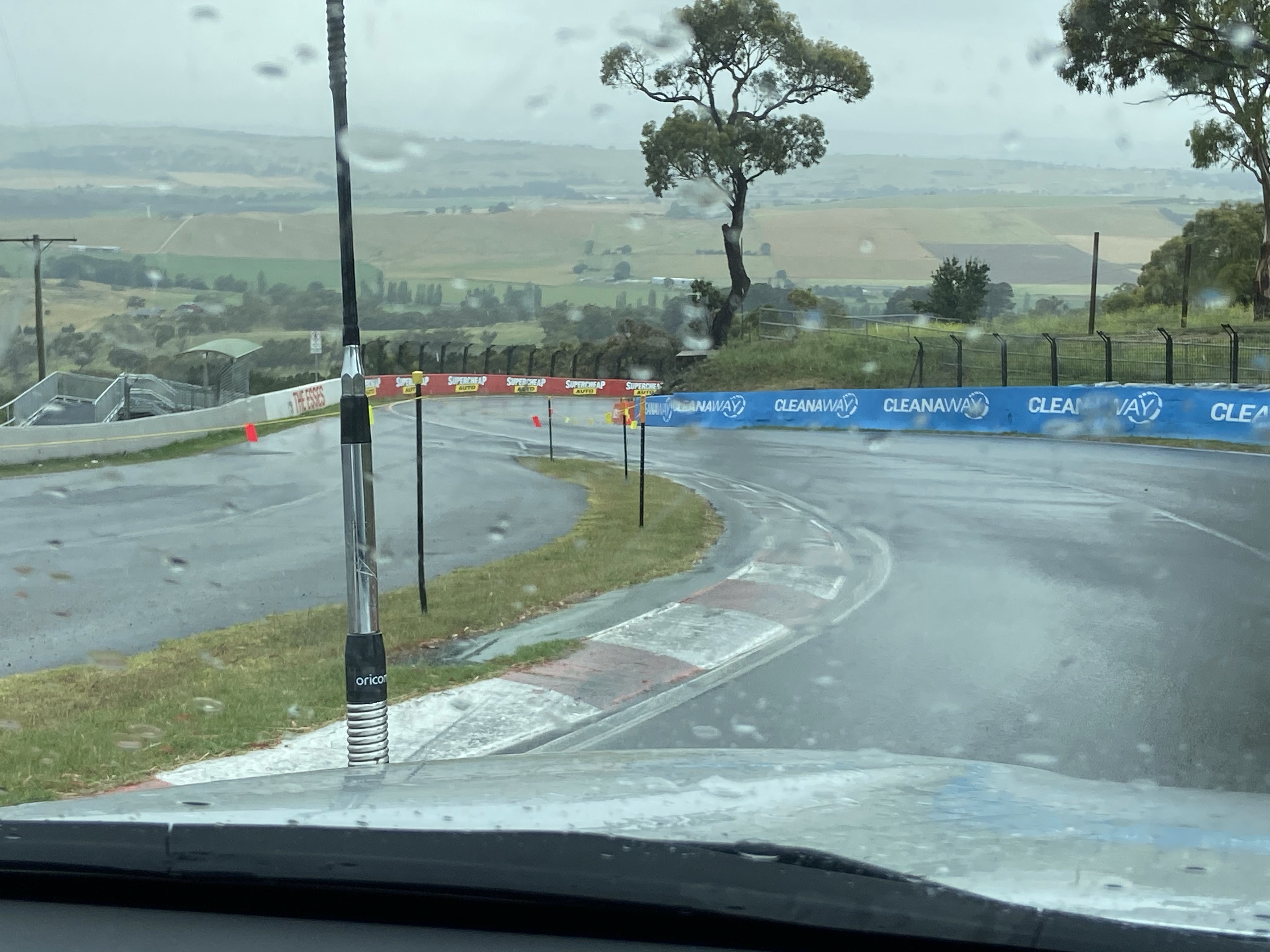Before leaving Bathurst we managed to check out Mount Panorama. It was wet conditions, so with our “slick” tires and NewAge Caravan in tow we set off. It was a LOT of fun, we managed to do a couple of laps. The rain did stop us getting far on foot to look at the viewing platform, but we could see a lot from the car.